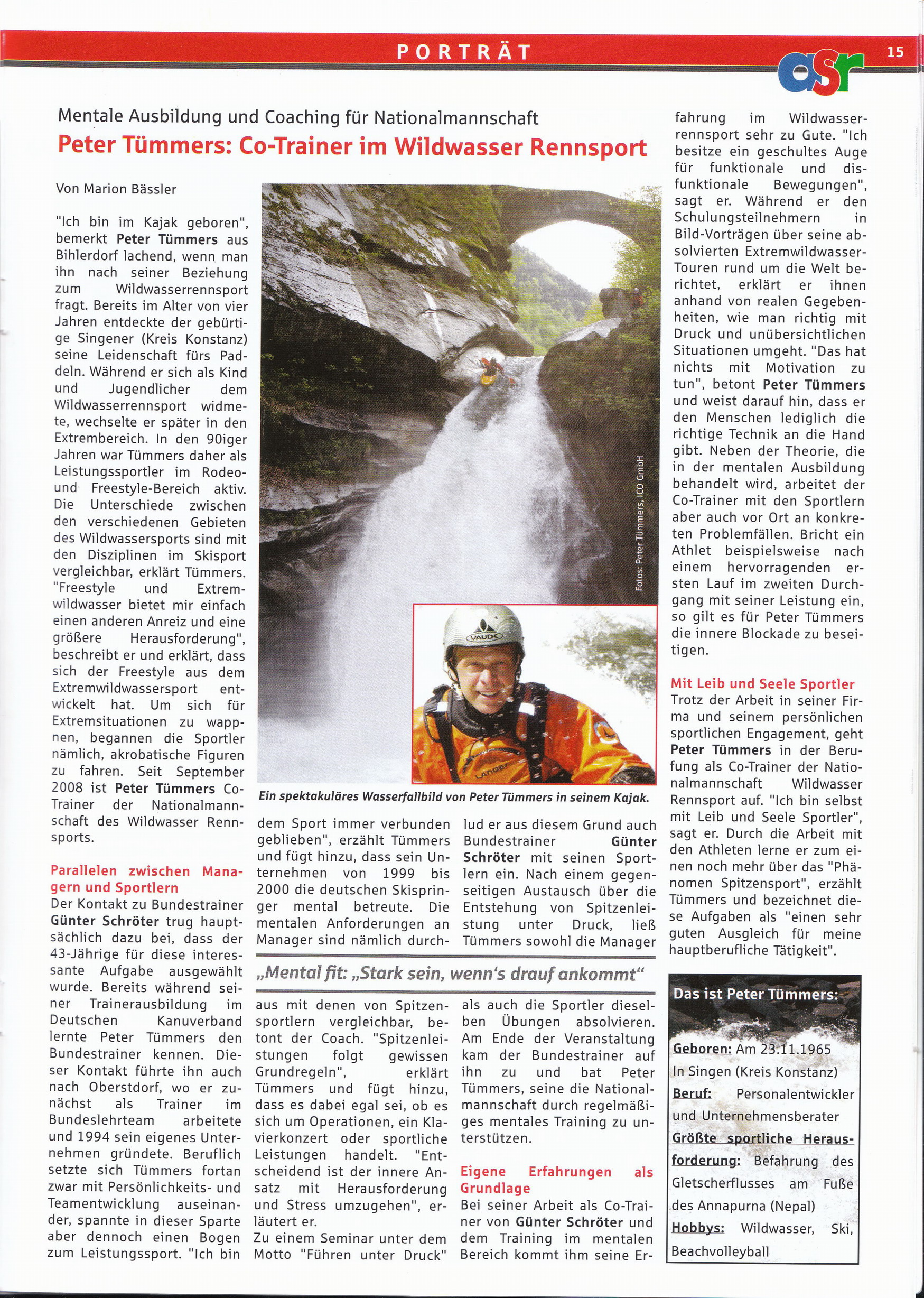 asr: Portrait Peter Tümmers als Co-Trainer der Wildwasser Nationalmannschaft und Mentalcoach